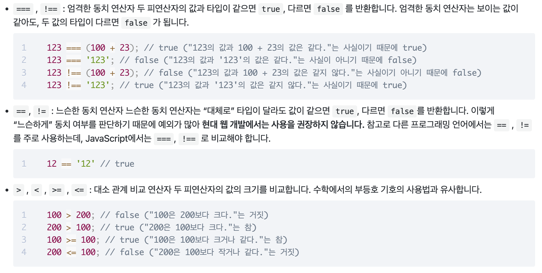 불리언은 비교연산자(comparison operator)로 두 값이 같은지 다른지를 확인할 때 유용합니다.