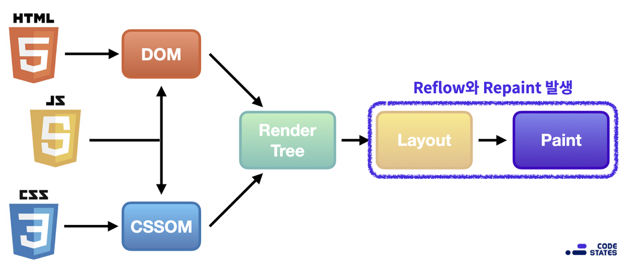 - 그 과정에서 리플로우(Reflow) , Repaint 과정을 거치게 된다.
